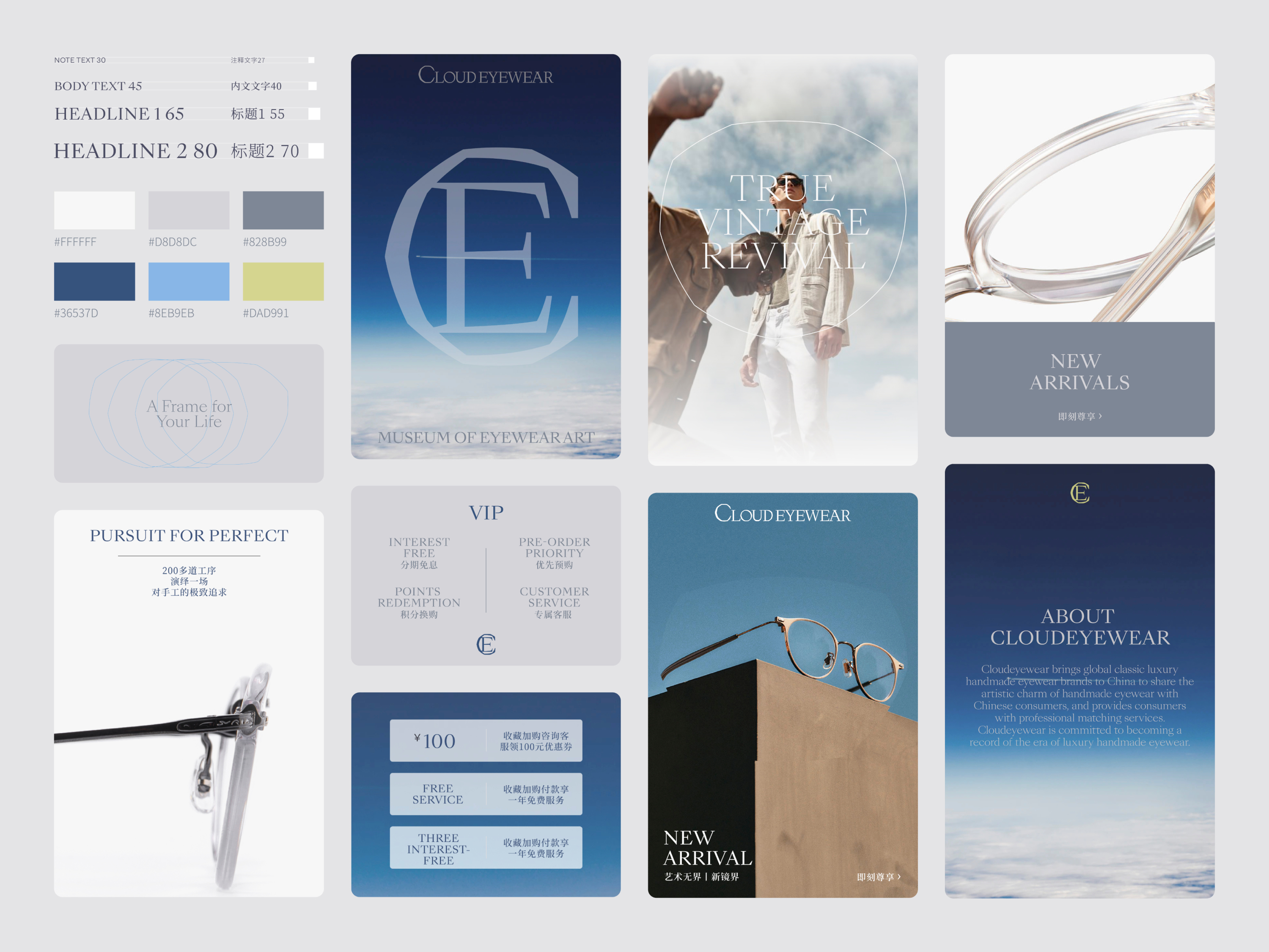 Cloud Eyewear is a collection brand of spectacle frames that pursues higher standards and quality. Cloud Eyewear mirrors product, taking the meaning of the cloud, not only refers to the magnificent scene above the sea of clouds, but also means the different shapes of the clouds; the independent personality and attitude of the cloud mirror product standing on a high place is also a kind of atmosphere, tolerance and diversity gesture.