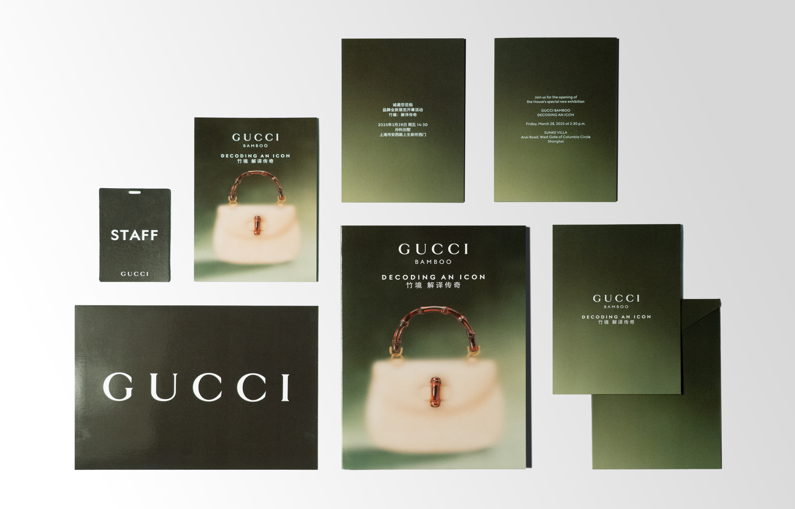 In 2025, Rela provided comprehensive visual identity and production support for Gucci Bamboo: Decoding An Icon, a brand event hosted by Gucci at the historic Sunke Villa in Shanghai. The project encompassed the design and production of on-site event materials, seamlessly integrating the refined elegance of the Bamboo collection with the architectural heritage of the villa. The key vision was further extended to digital assets and promotional posters, ensuring a cohesive and impactful visual language across all touchpoints. Through meticulous attention to materials, details, and graphic rhythm, the design delivered an immersive brand experience that balanced contemporary expression with the enduring spirit of the icon.